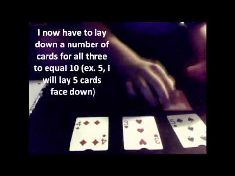 Three cards are then dealt face up on the table. Depending on the value of the face up cards, more cards are dealt face up on each pile to make up the value of each pile add up to ten.